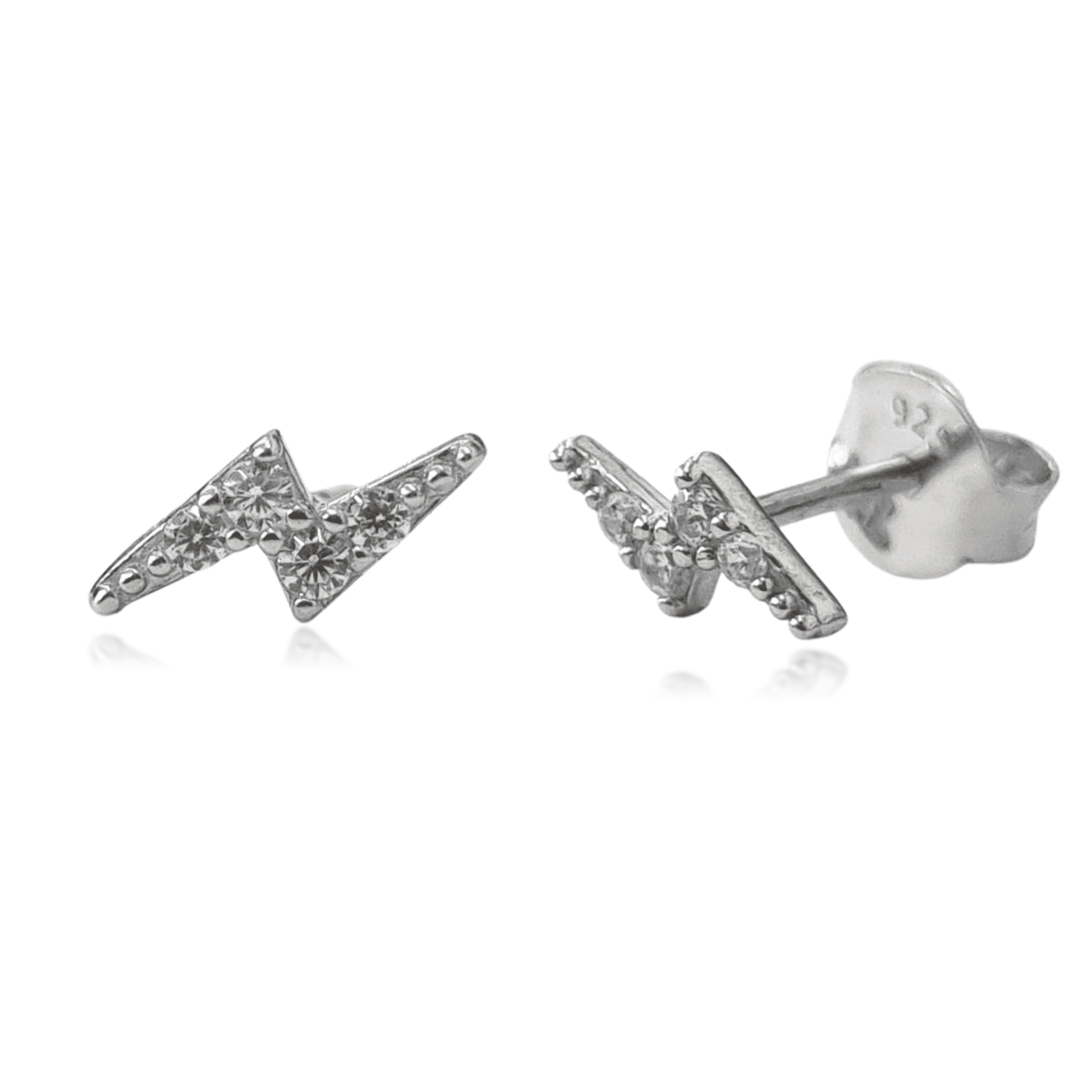 עגיל בצורת ברק משובץ זרקונים קטנים