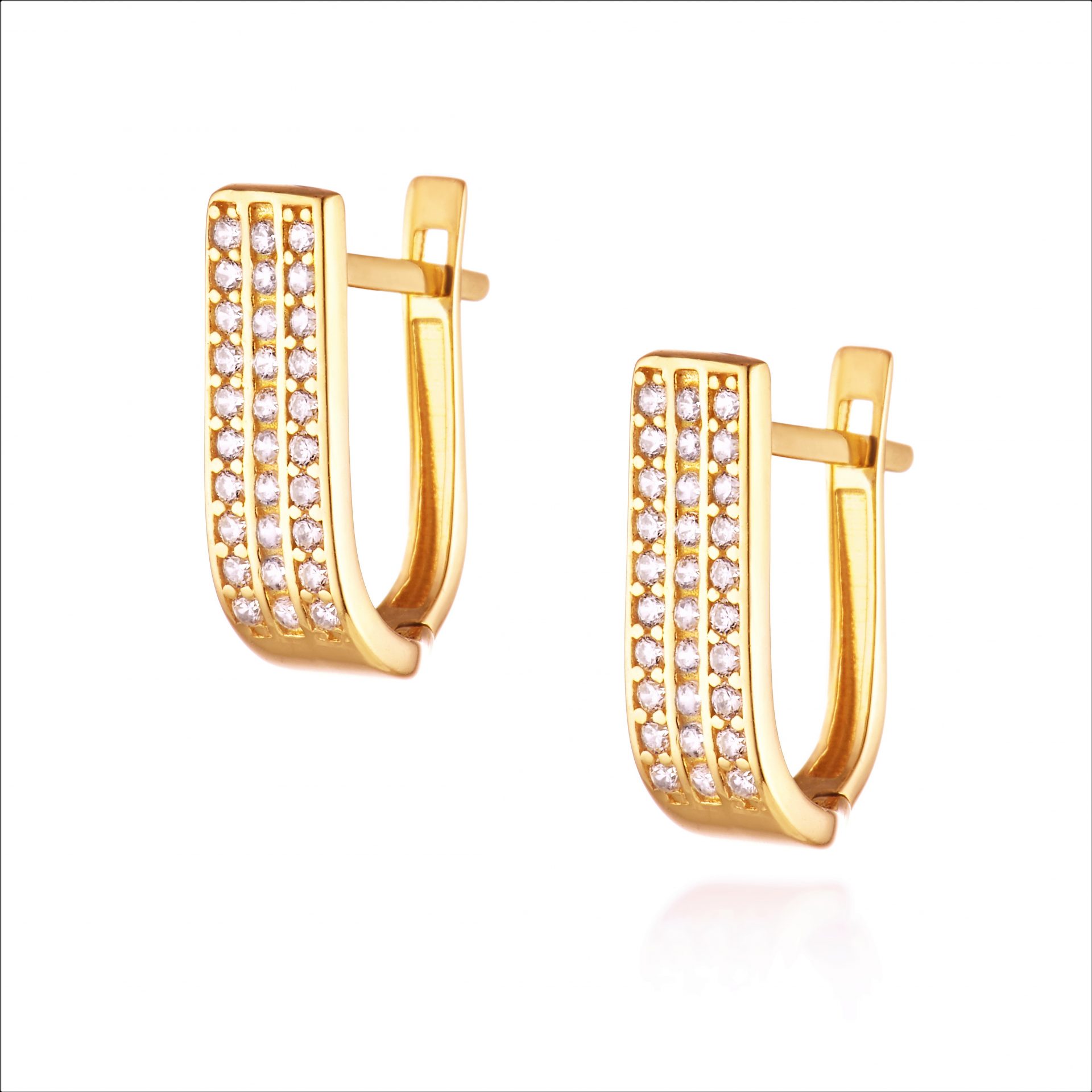 עגילי ציפוי זהב תלויים – 3 שורות זרקונים גדול