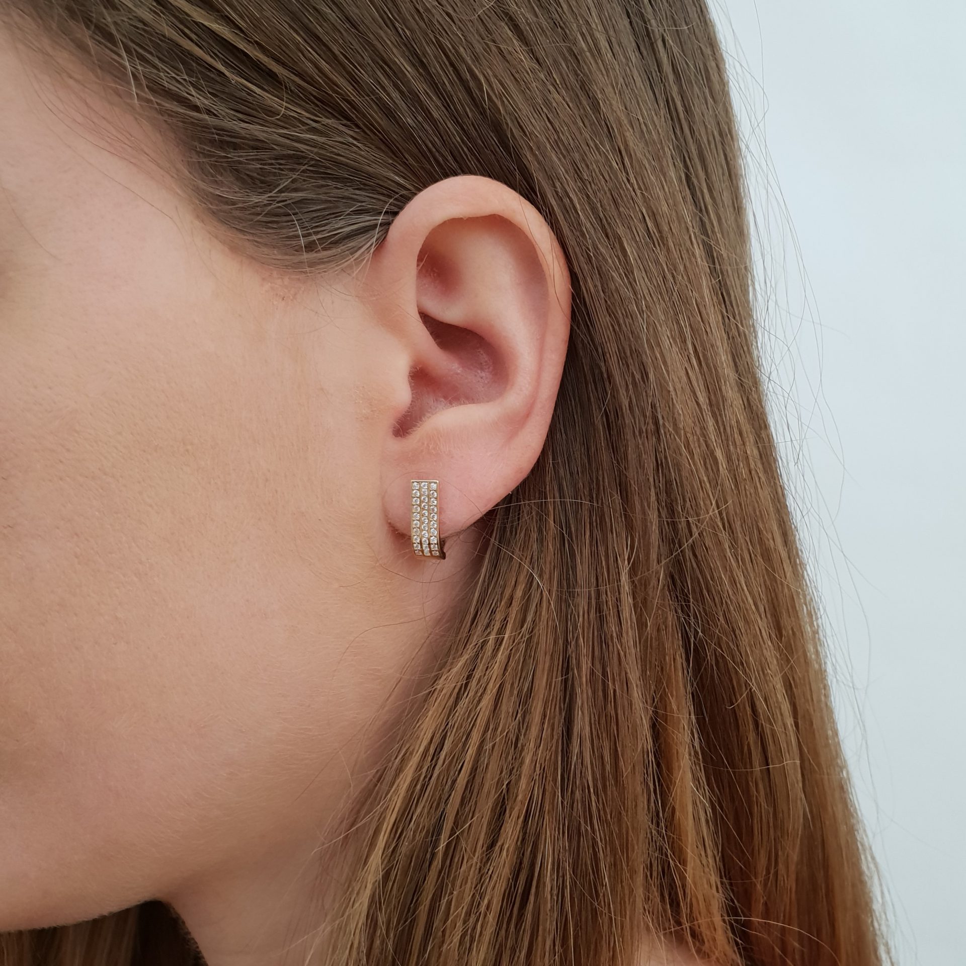 עגיל תלוי גדול משובץ בשלוש שורות זרקונים