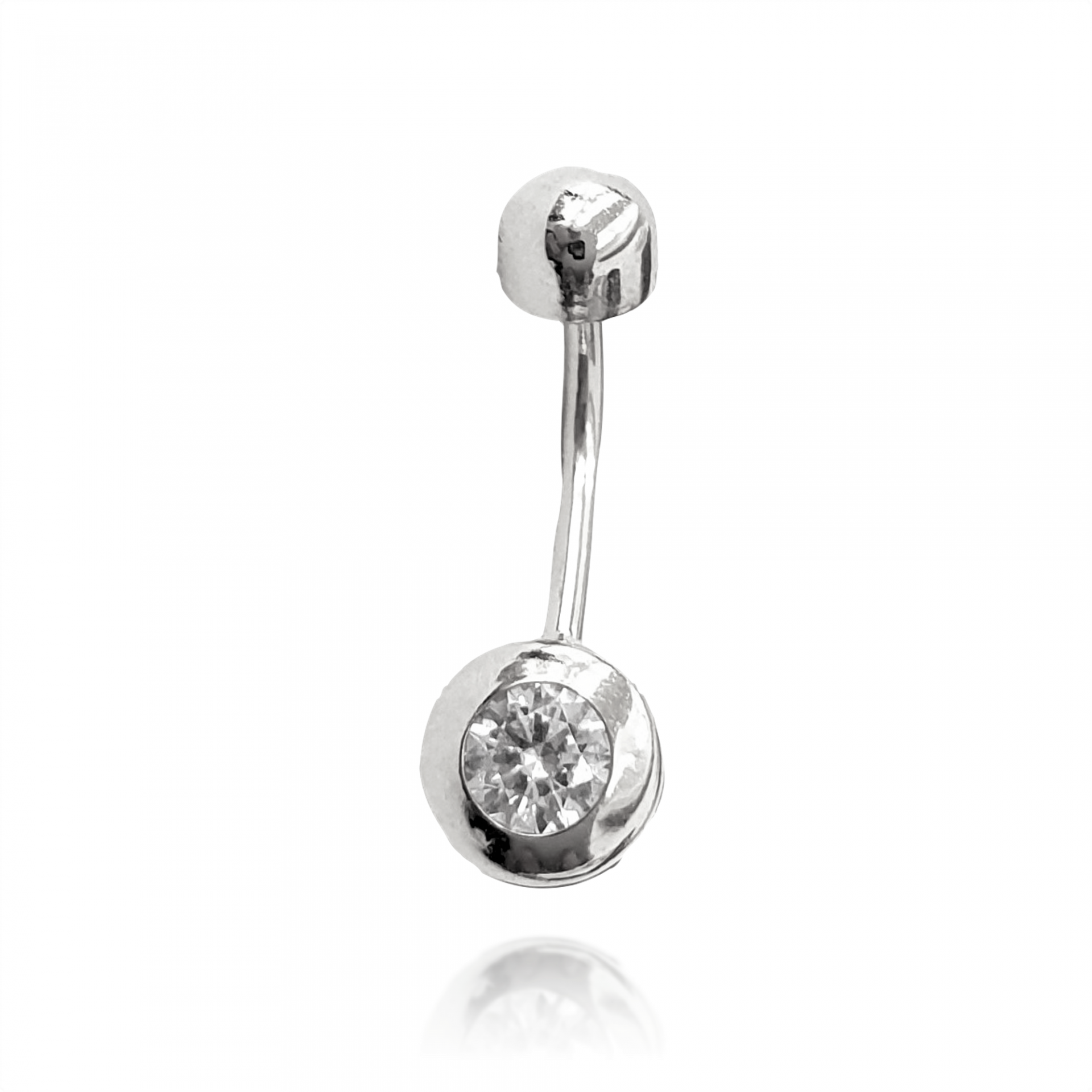 פירסינג זהב לבן – עגילים בטבור זרקון מסגרת