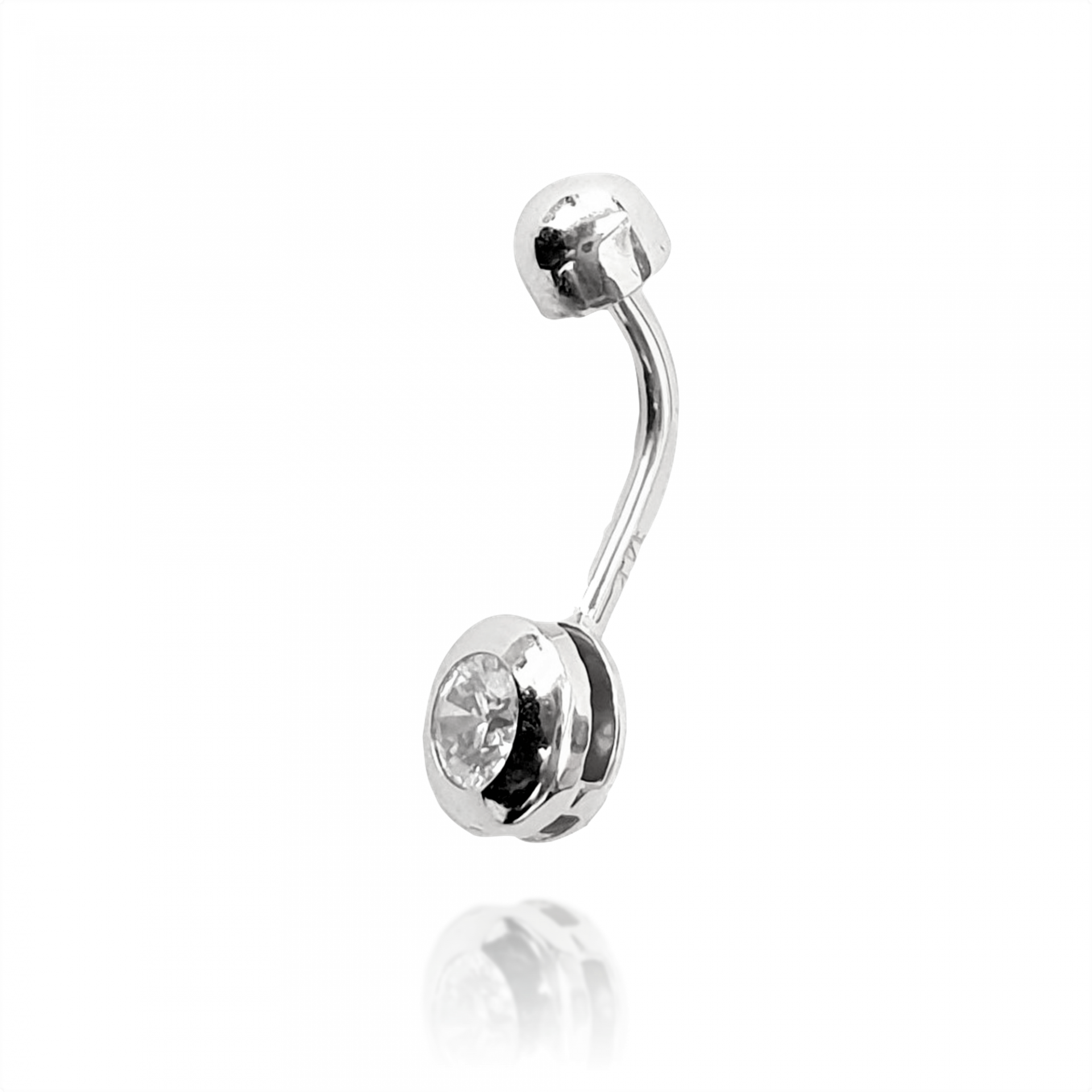 עגיל לטבור משובץ זרקון במסגרת כוס עגולה