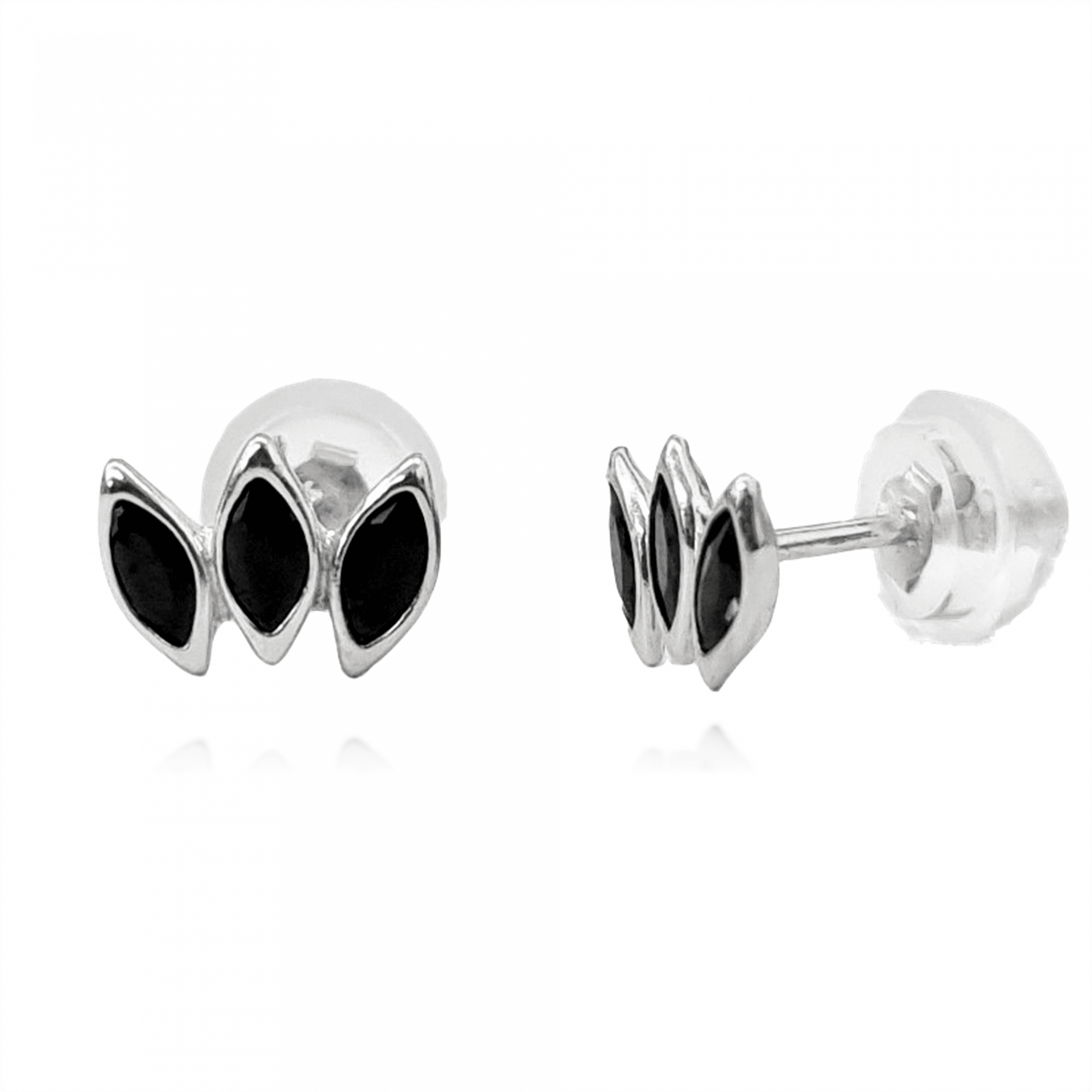 עגיל בצורת מניפה משובצת זרקונים שחורים