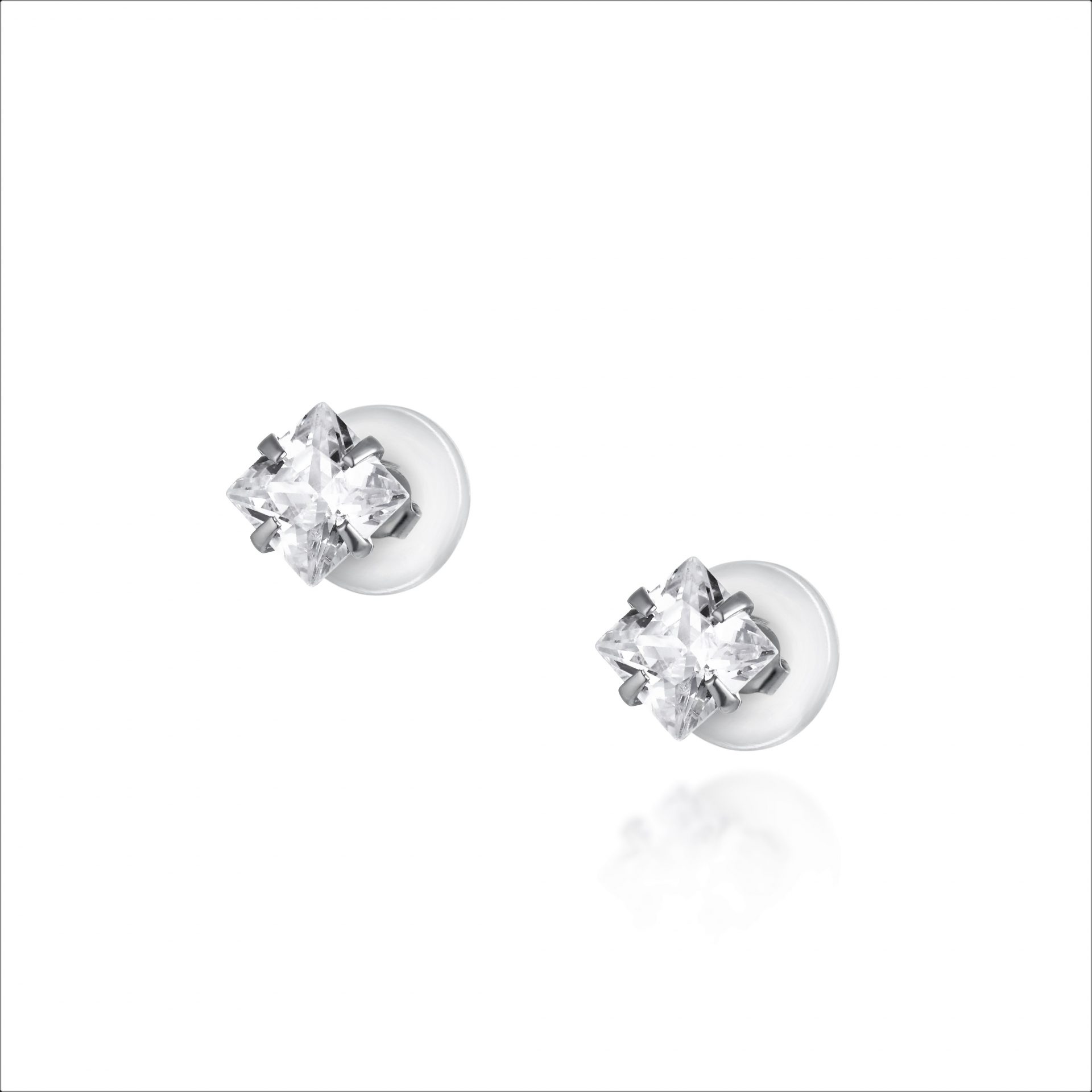 עגילי כסף צמודים – זרקון מרובע 4 מ"מ