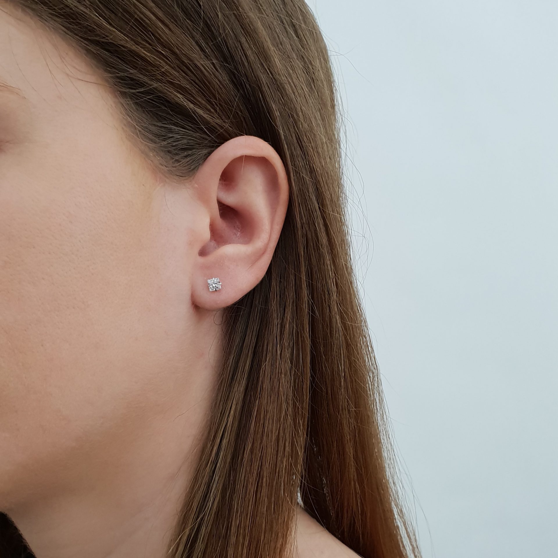 עגיל זרקון מרובע 4 מ"מ משובץ ב4 שיניים