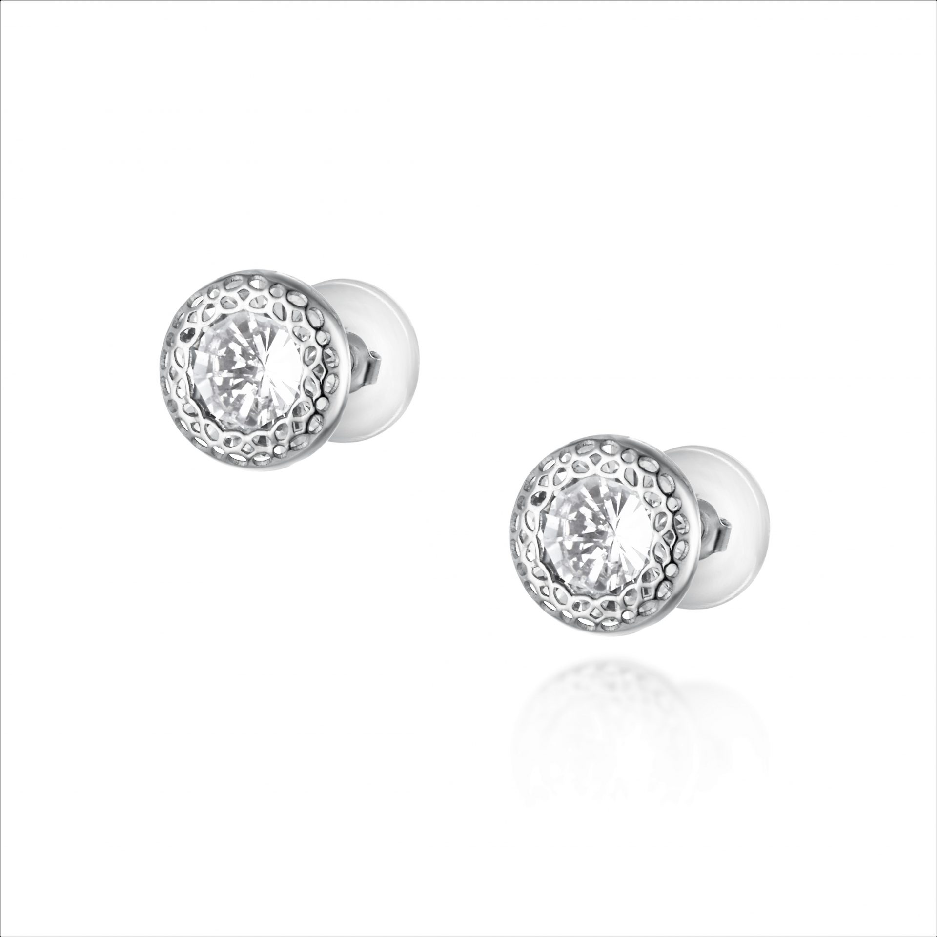 עגילים מיוחדים עם זרקון מרכזי עטוף ברשת מחורר