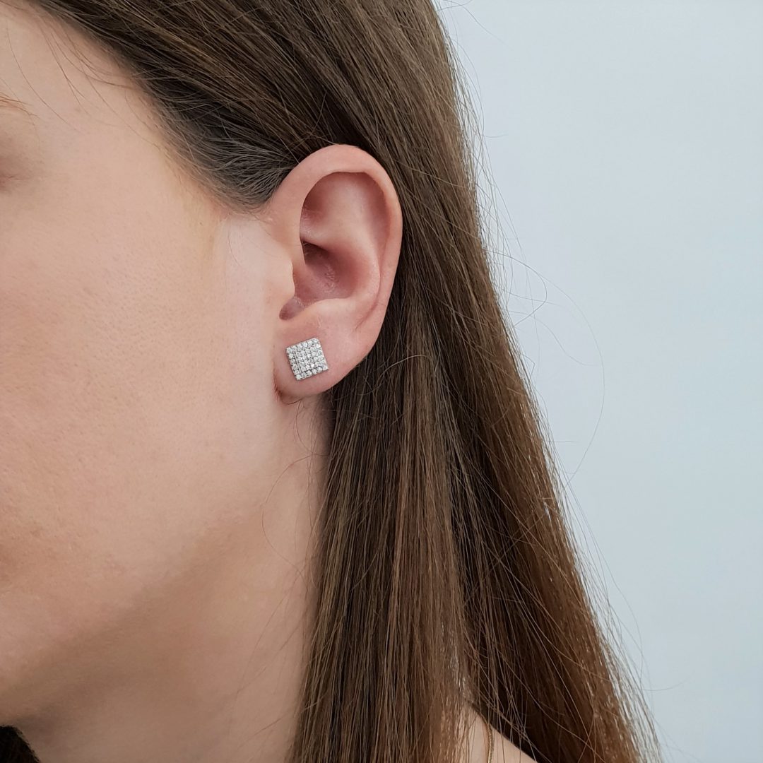 עגיל מרובע מעוטר זרקונים למראה יוקרתי