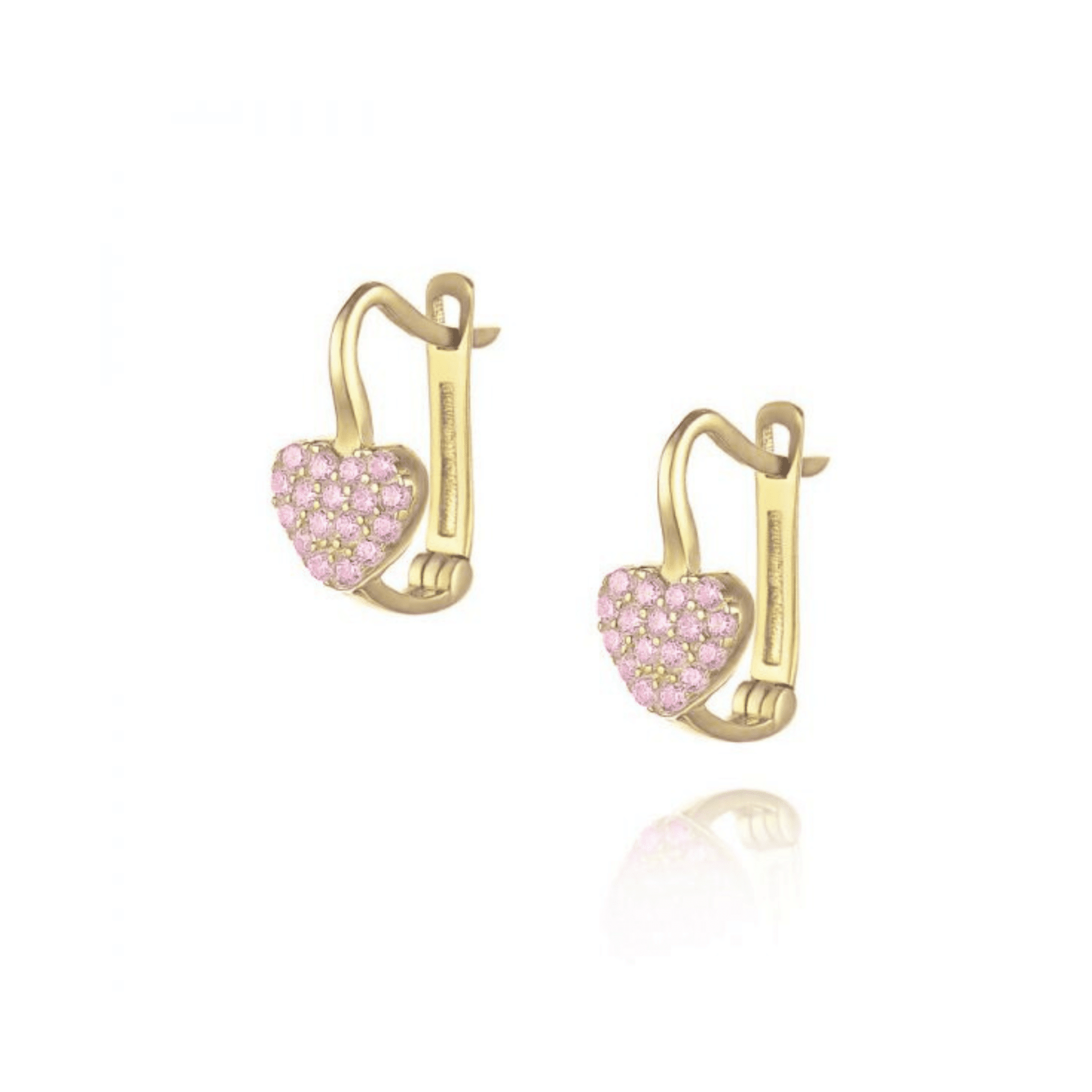 עגילי ציפוי זהב חישוק – לב ורוד