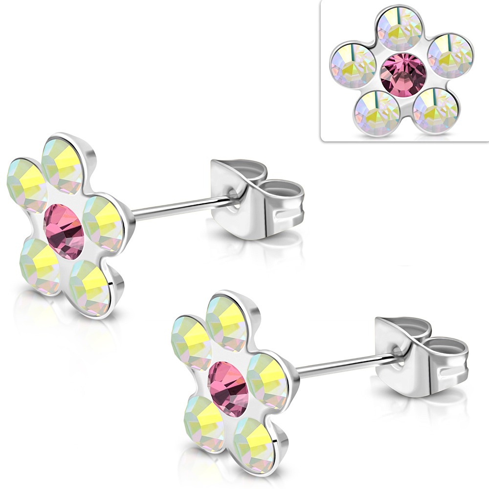 עגיל פרח קלאסי בצבעי קשת